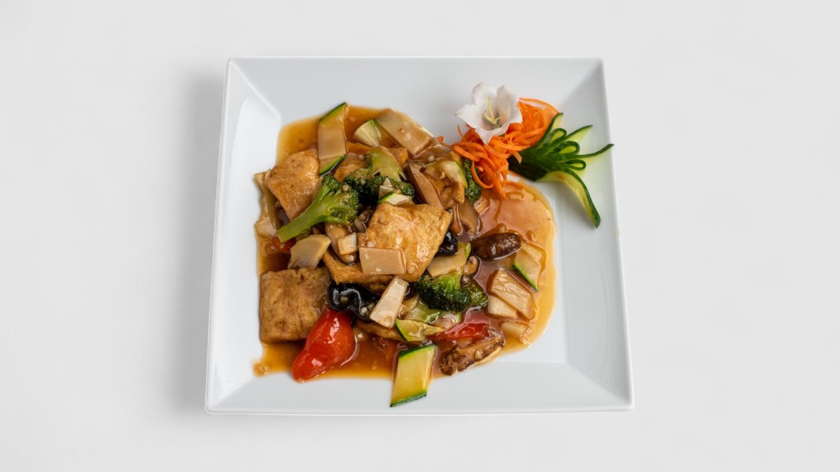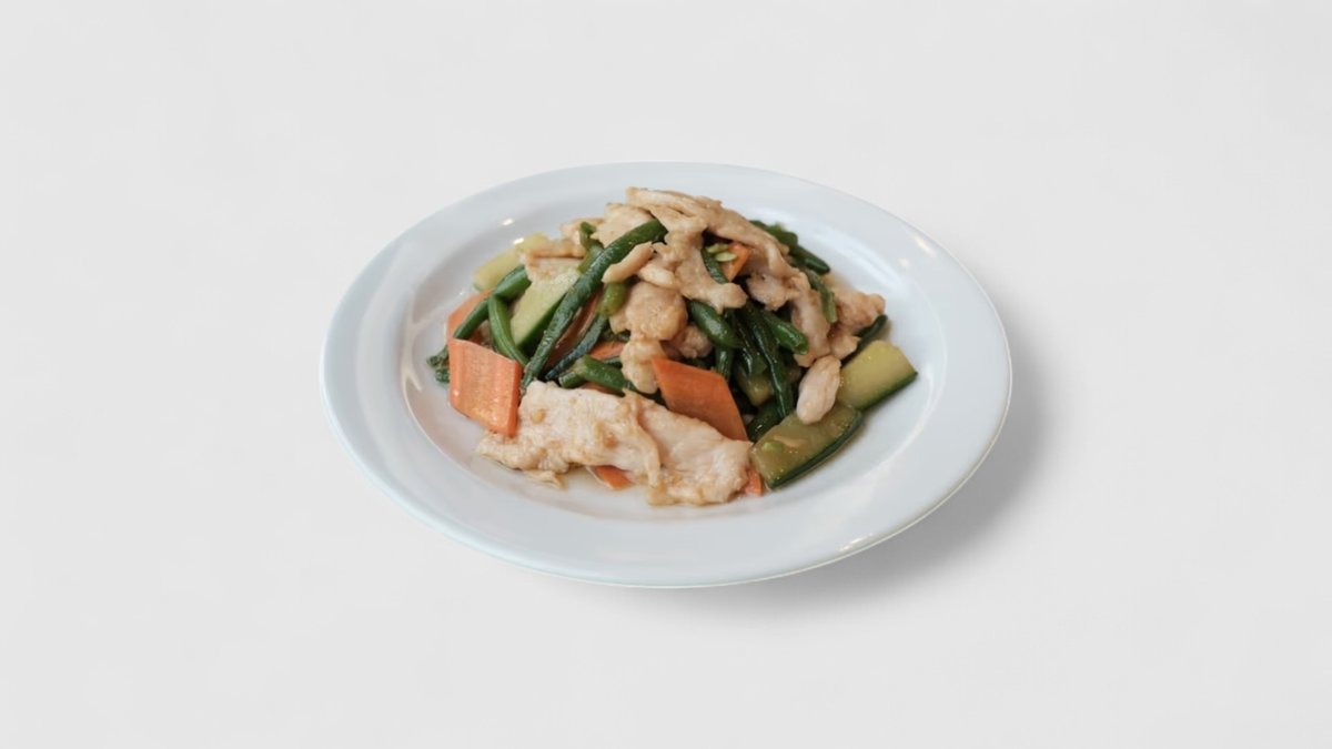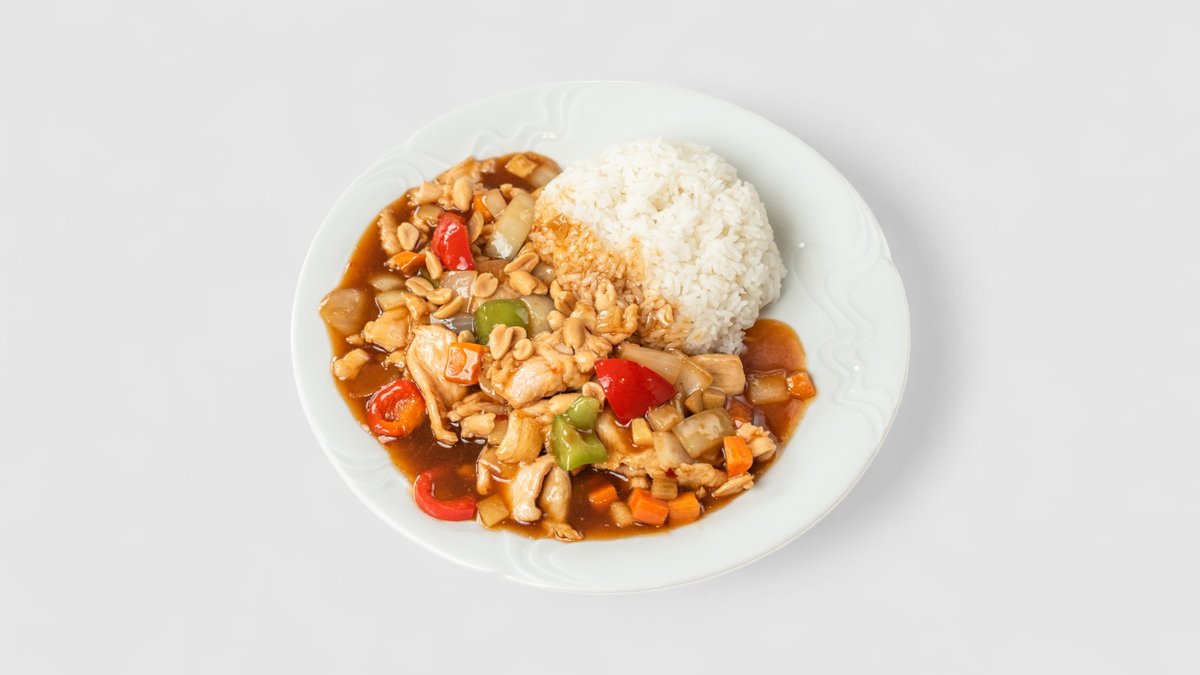 50. Křupavé kuře s arašídovou omáčkou a zeleninou