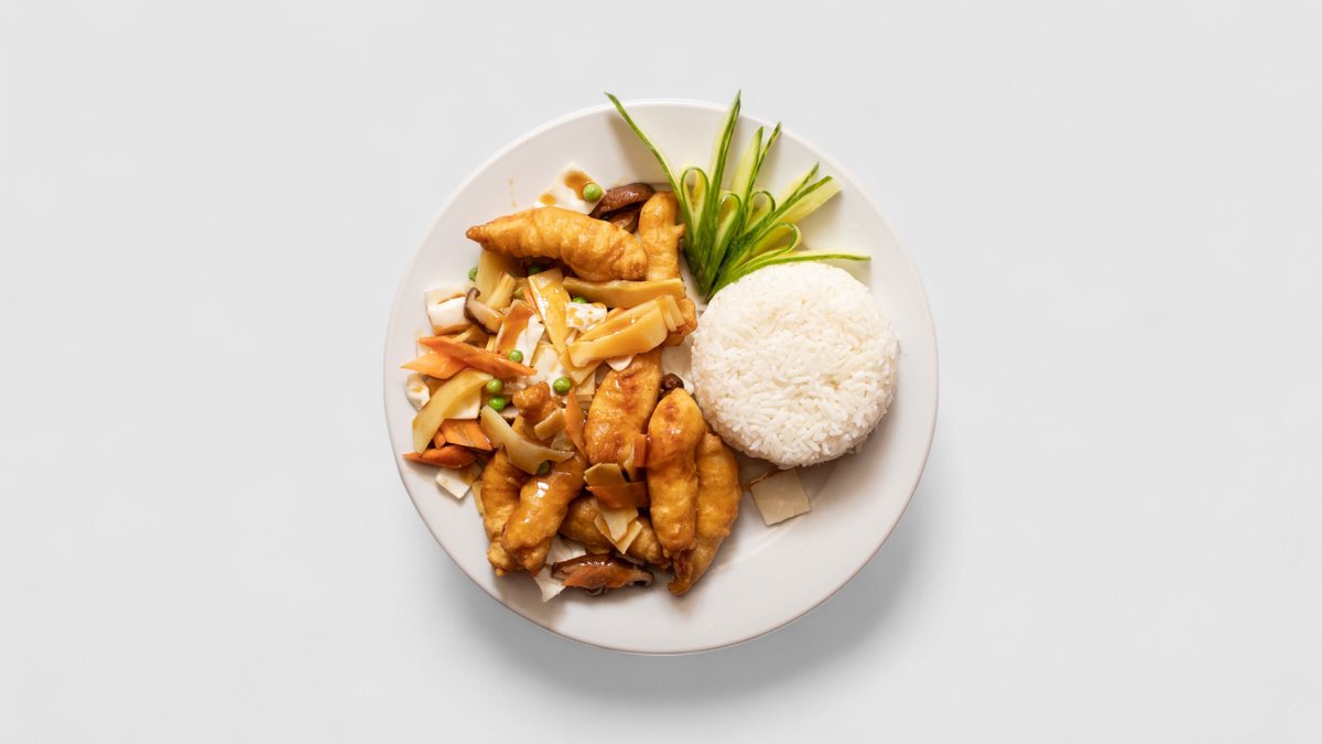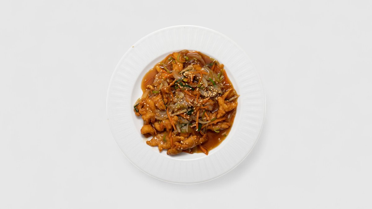 52. Křupavé kuře s mangovou omáčkou a zeleninou