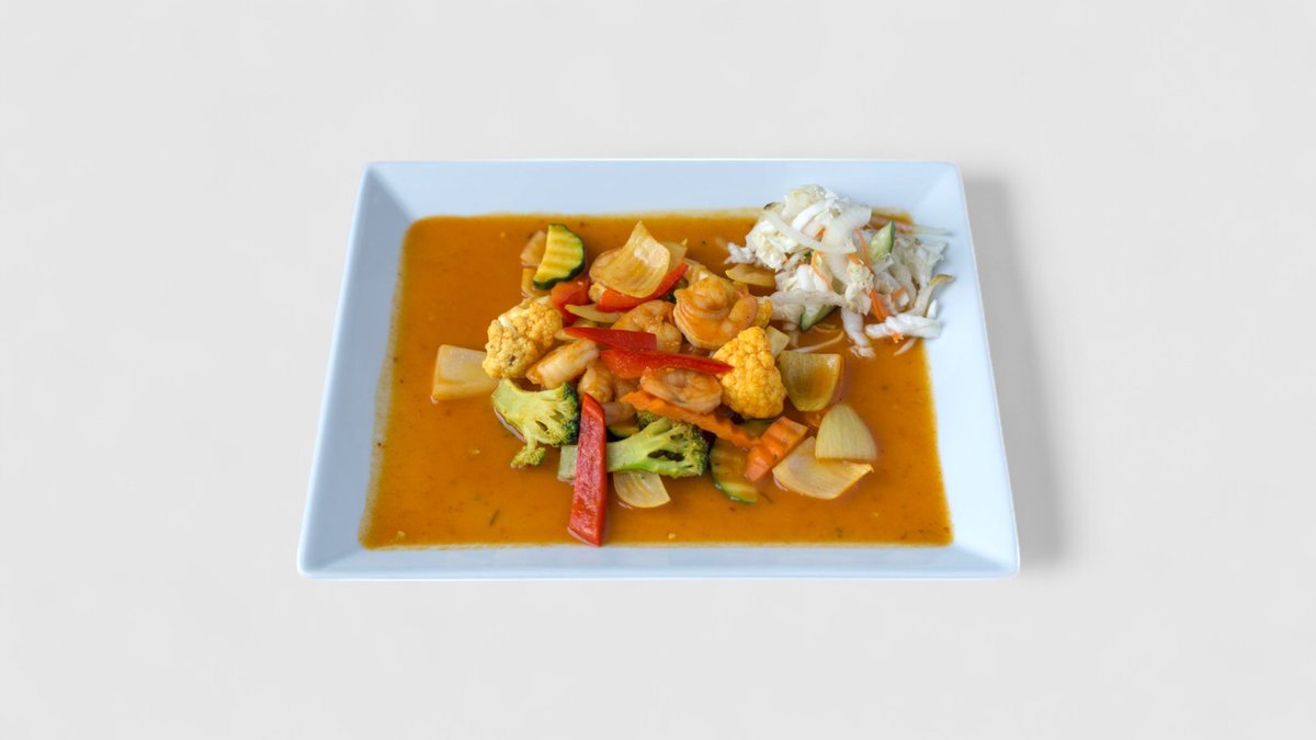 54. Křupavá kachna s thajským žlutým kari a kokosovým mlékem