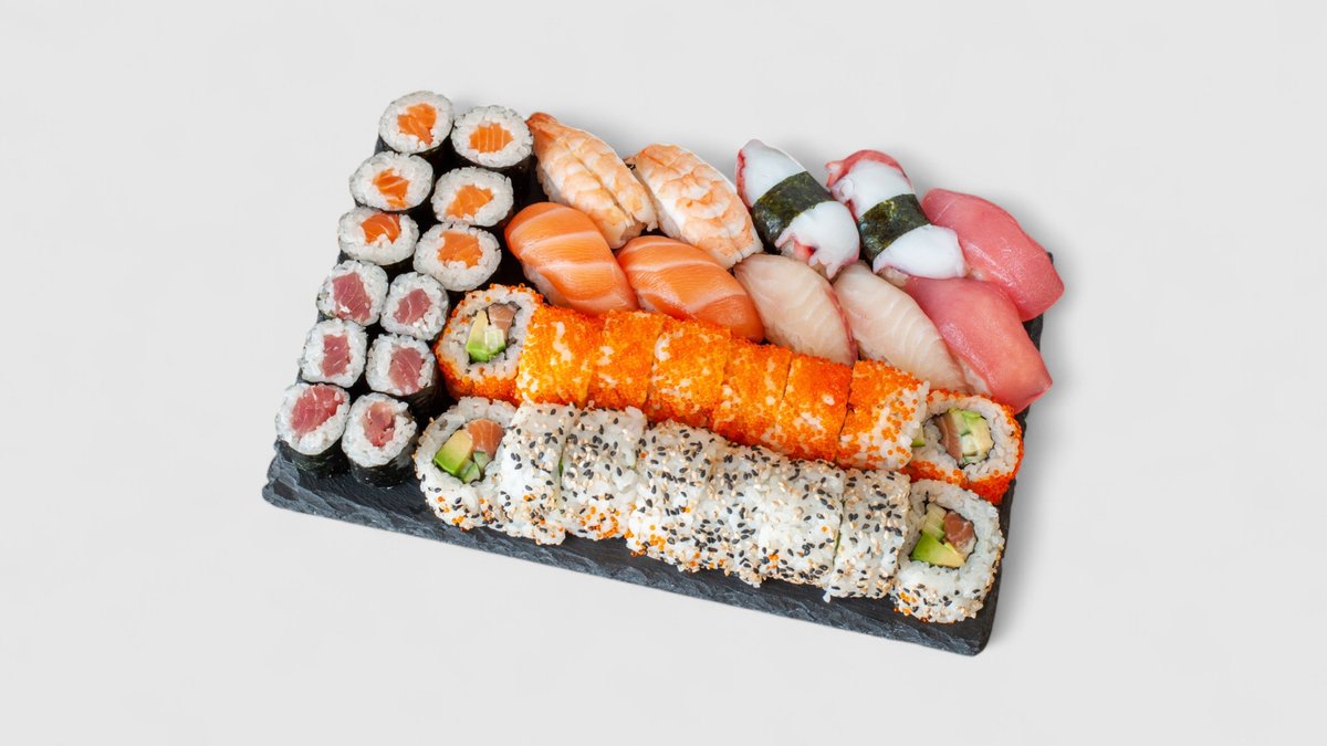 8 ks losos maki + 8 ks krabí maki + 8 ks avokádo maki.