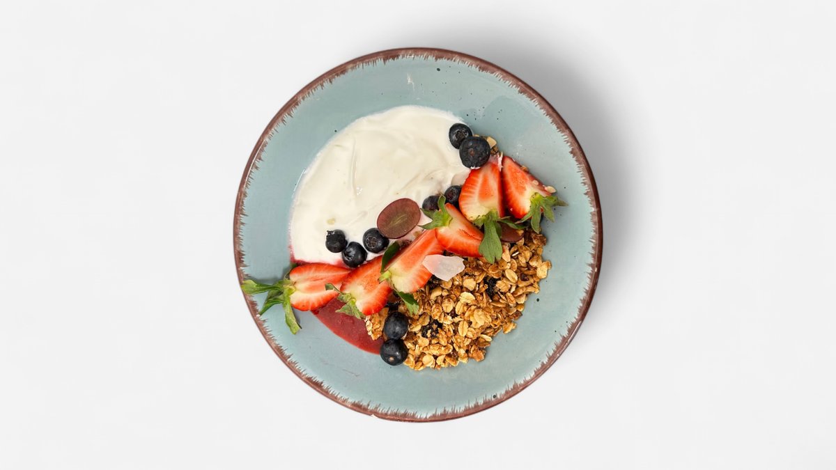 naše granola, řecký jogurt ovoce, med