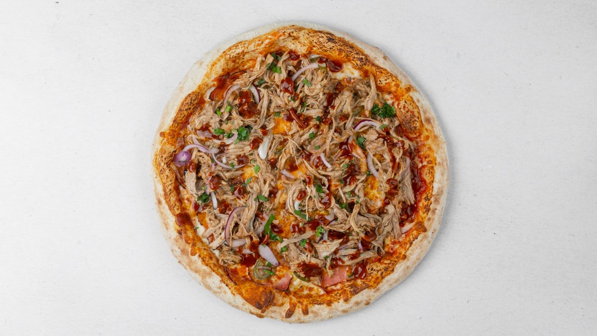 rajčatové sugo, mozzarela, šunka, vepřové maso, paprikový salám, slanina, feferonky, tabasco, uzený sýr