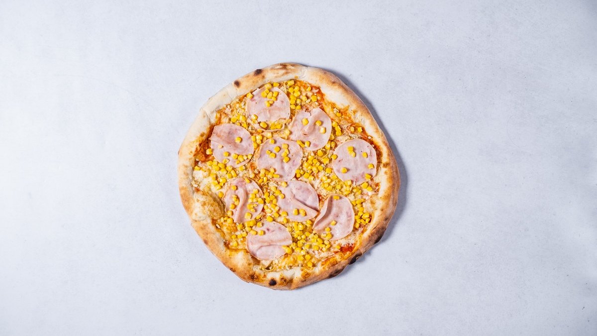 Rajčatové sugo, Mozzarela, Šunka, Kukuřice, Eidam