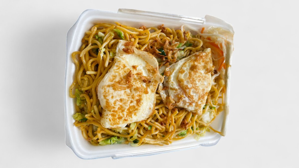 Široké rýžové nudle skuřecím masem,a vaječniou omelotou rýžové nudle na thajký způsob