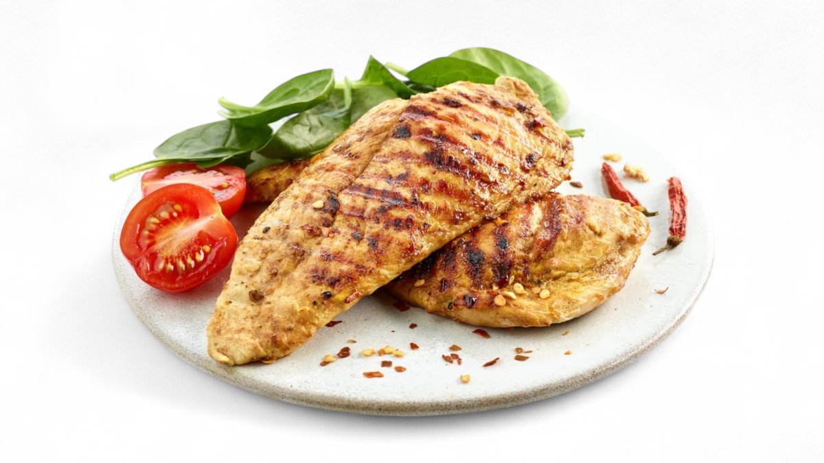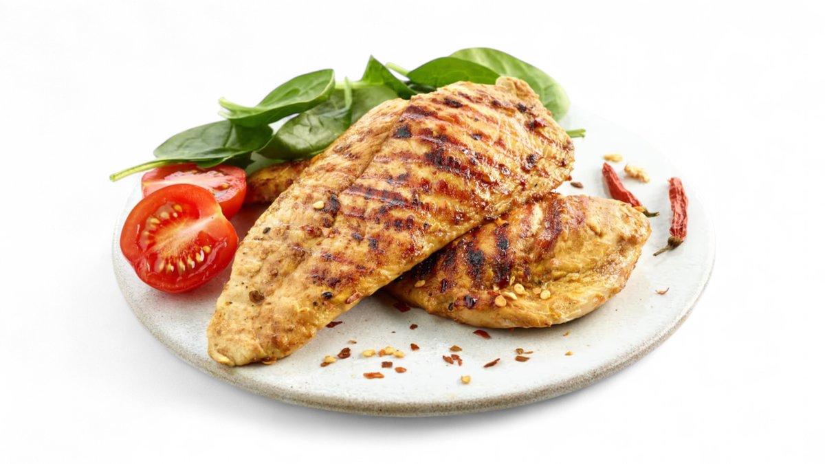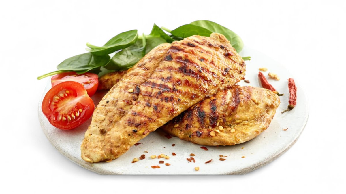 4x 150g Steak z kuřecího prsa zapečený hermelínem, zeleninová obloha, příloha dle vlastního výběru.