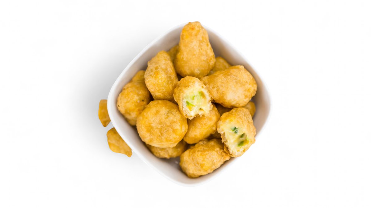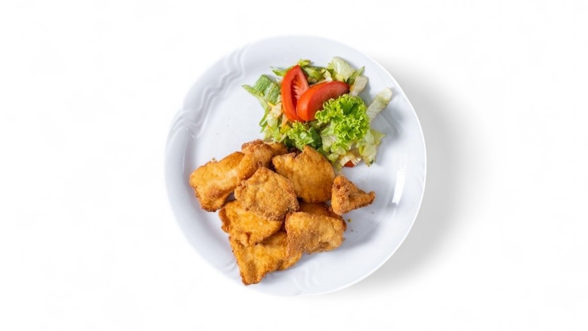 Akce-Smažené kuřecí mini řízečky s pikantními cheddar nugetky, příloha + CHEDDAROVÝ DIP ZDARMA