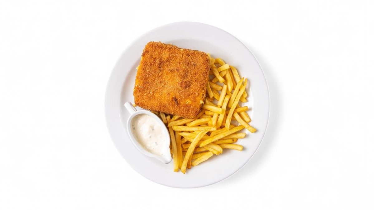 Akce-75g Smažené kuřecí mini řízečky, 75g pikantní cheddar nugetky, příloha dle vlastního výběru, 40g cheddarový dip