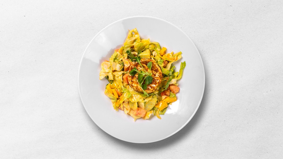 Zeleninový salát s grilovaným hermelínem a francouzským dresingem
