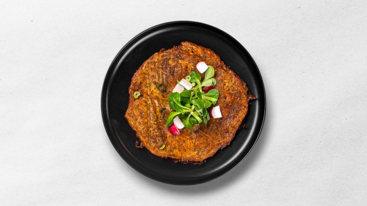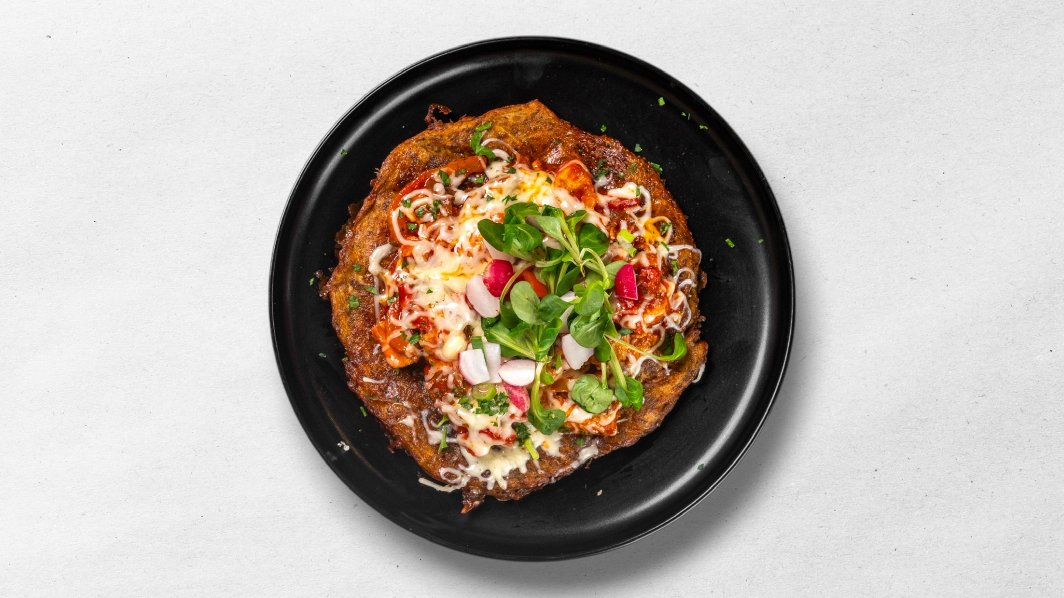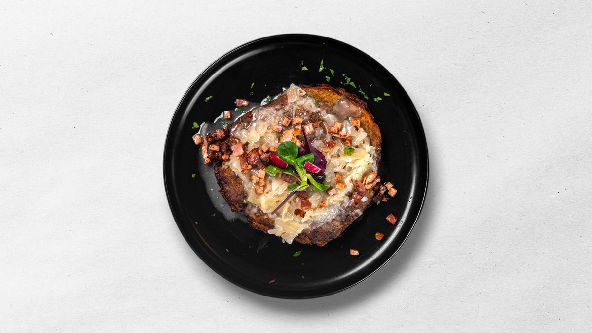s rozpékanou slaninou, opékaným toastem a parmezánem