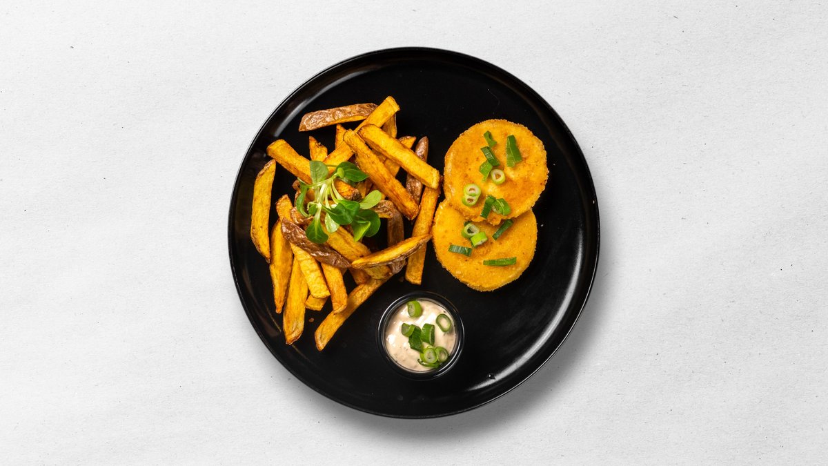 150g Smažená gouda , domácí hranolky a tatarská omáčka