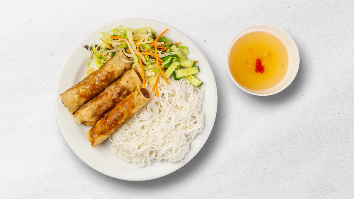 Mix rýžové kulaté nudle, závitky, salát a omáčka.