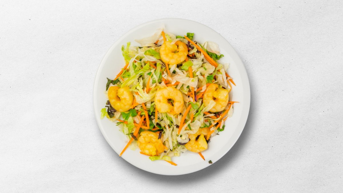 Salát s krevetami, míchanou zeleninou, citrusovým dresinkem a osvěžující chutí.