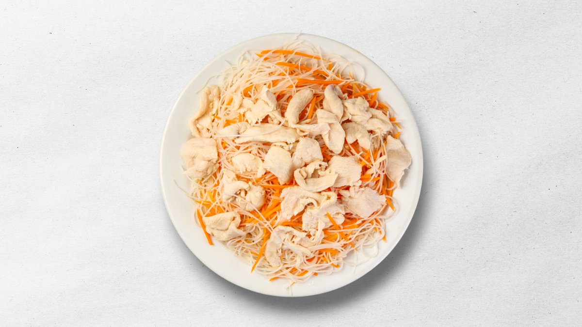 Aromatické kuřecí maso s rýžovými nudlemi, lehké a chutné asijské jídlo.