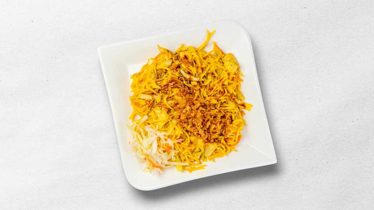 Vietnamské restované nudle se zeleninou, bylinkami a lehkým kořením.