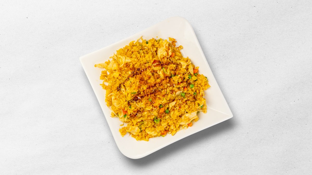 Aromatické kuřecí maso podávané s dušenou rýží a vyvážené chutné jídlo.