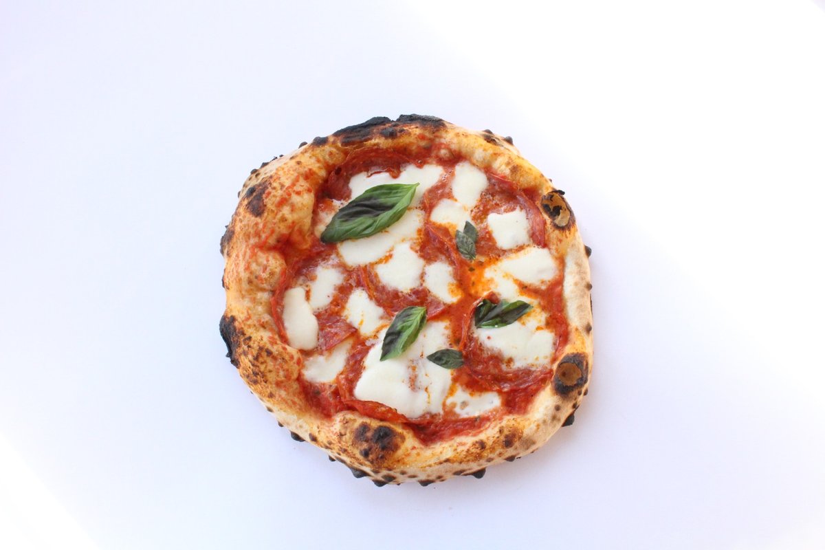 Italská drcená rajčata D.O.P., mozzarella fior di latte, neapolský pikantní salám, oregano, bazalka, extra panenský olivový olej.