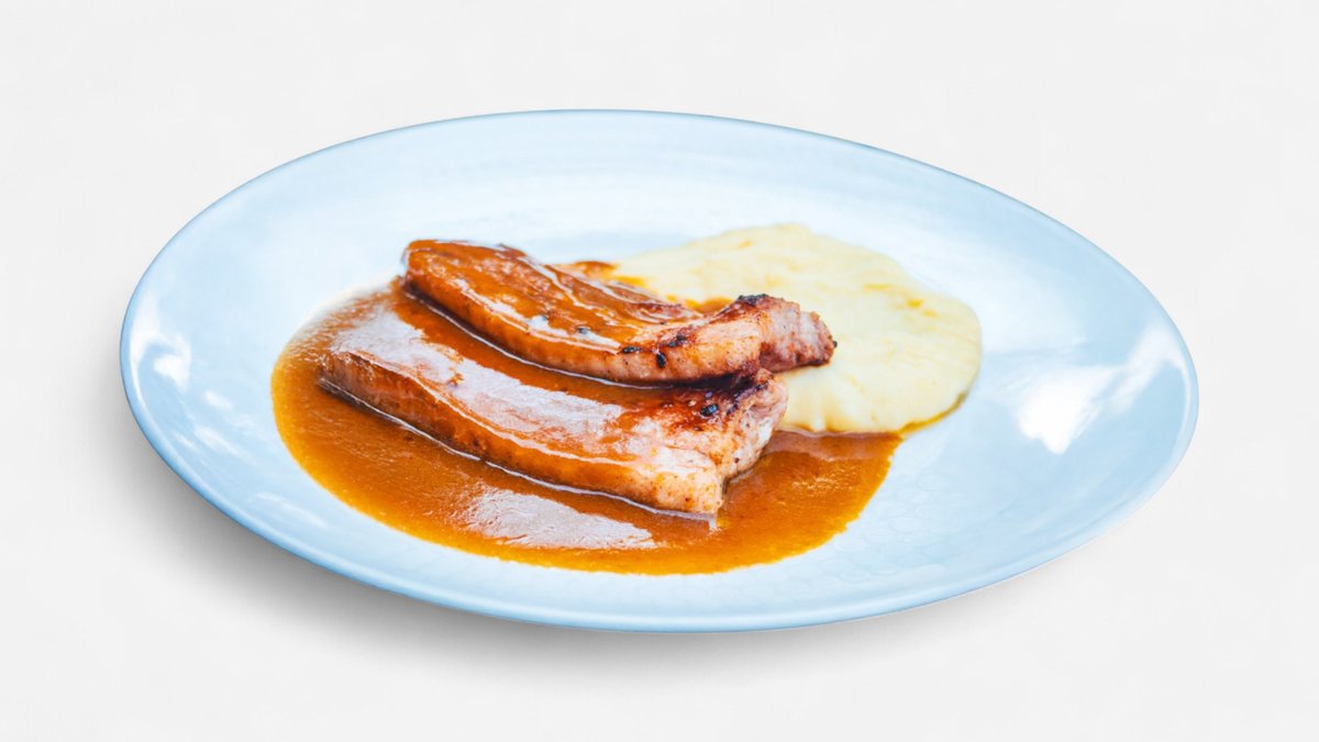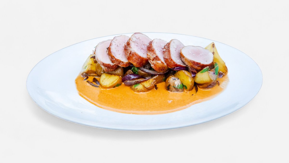 S čabajkovou omáčkou a opečené brambory grenaille s červenou cibulí