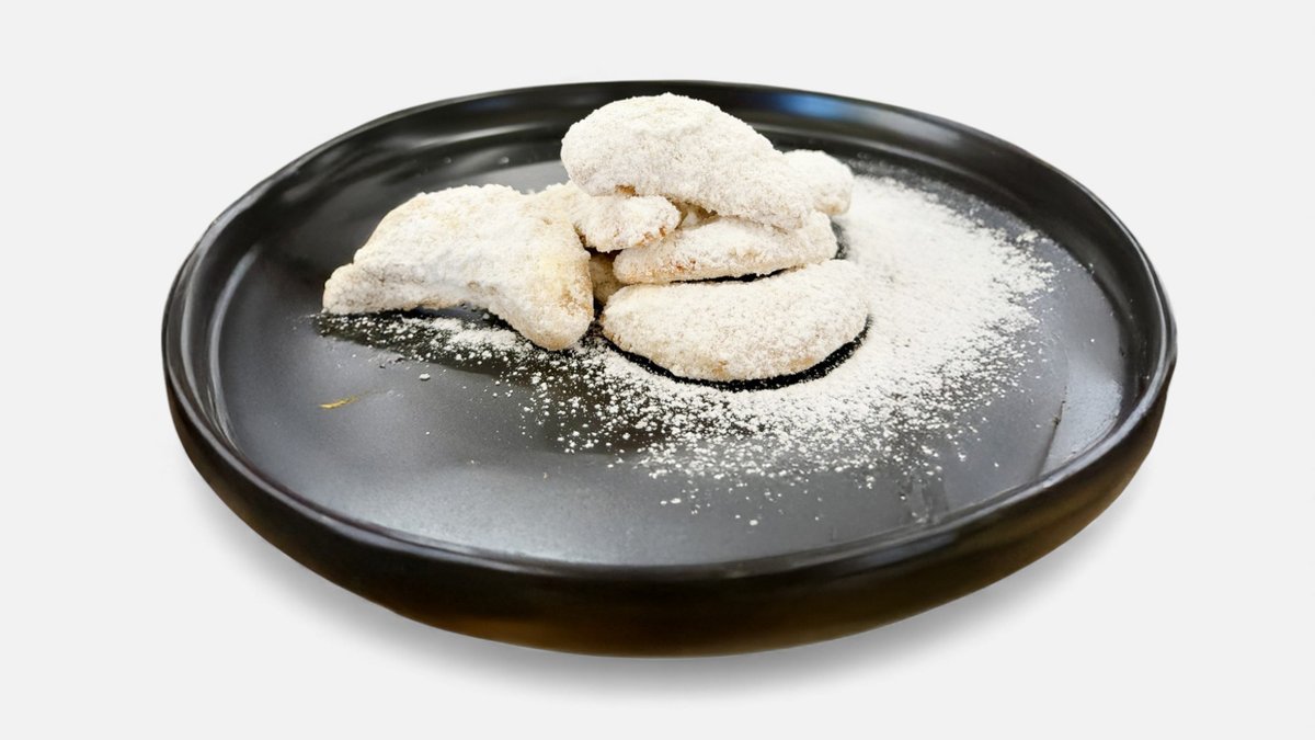 Křehké máslové těsto s jemně mletými ořechy, obalené v cukru.