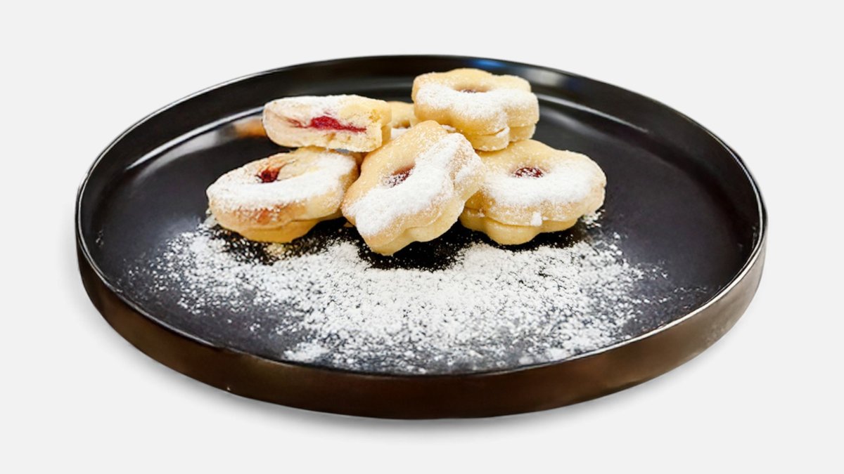 Křehké máslové linecké koláčky plněné poctivou jahodovou marmeládou, která dodává každému soustu lahodnou sladkost.