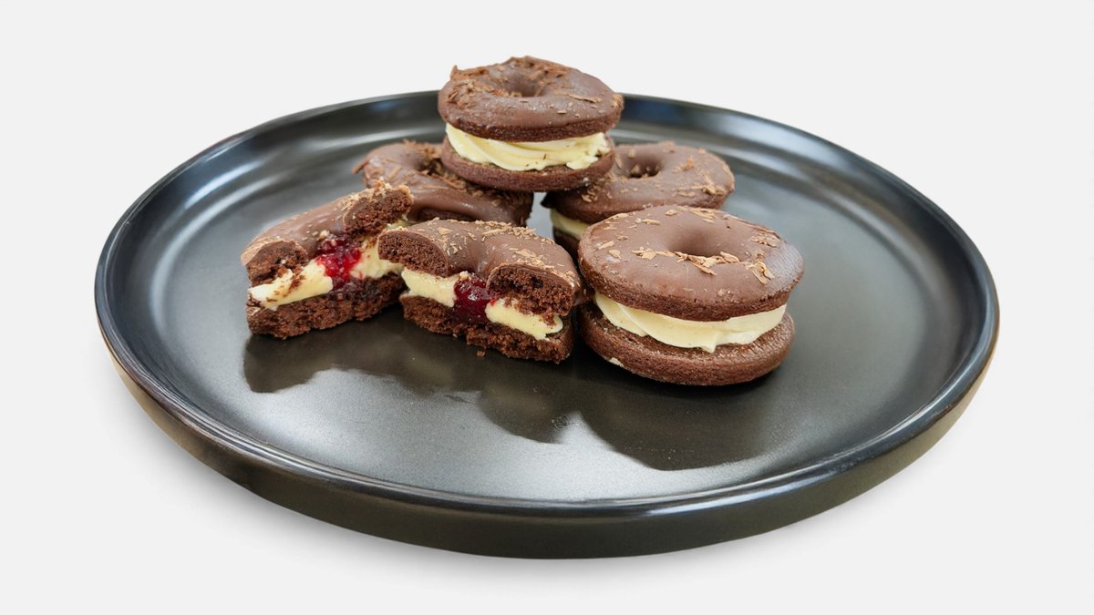 Nadýchané kakaové koláčky se šťavnatou višňovou náplní a jemným krémem. Max trvanlivost 8 dní.
