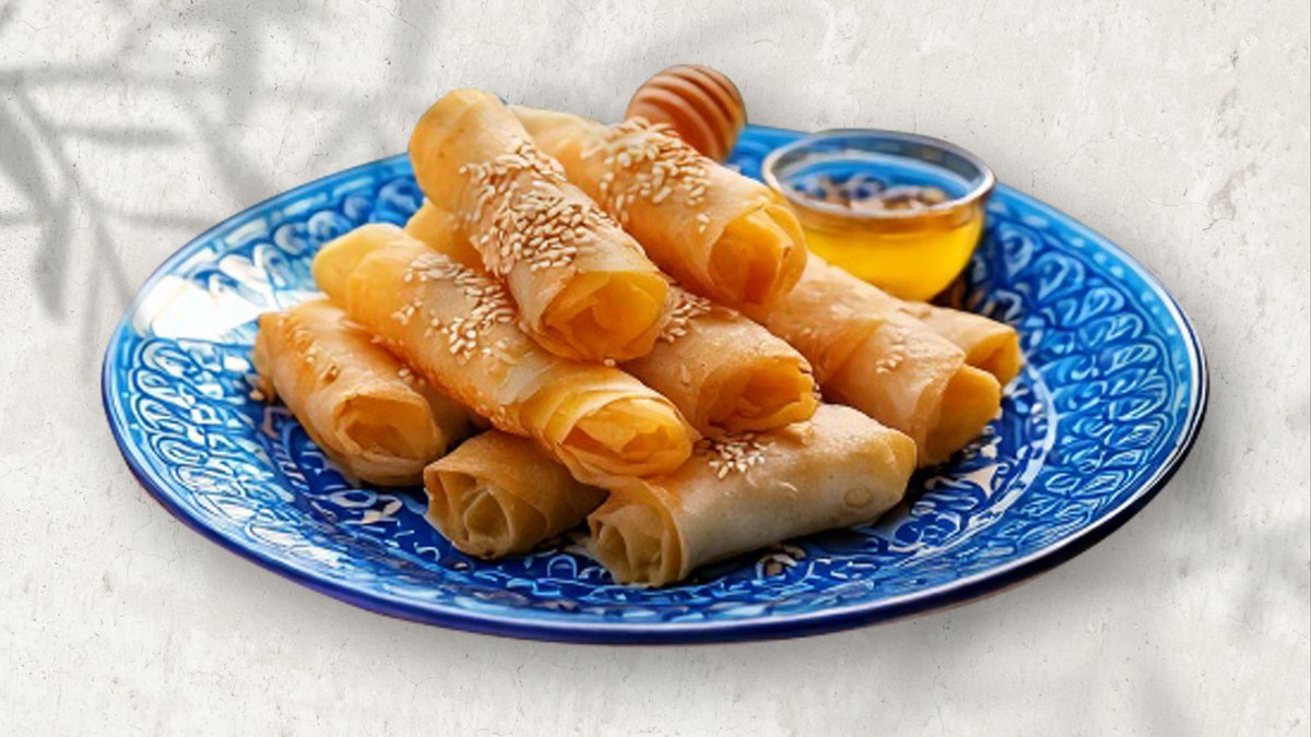 Taštičky se sýrem Feta, tymiánový med, sezam