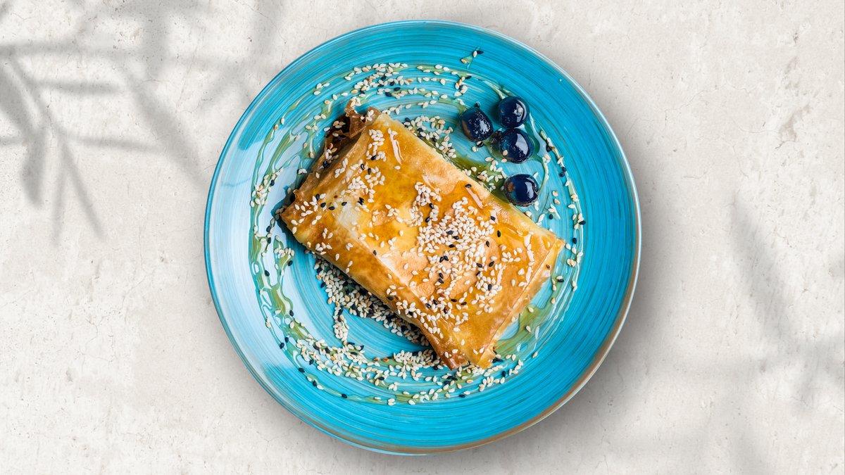 Křupavé filo těsto prokládané ořechy a zalité sirupem