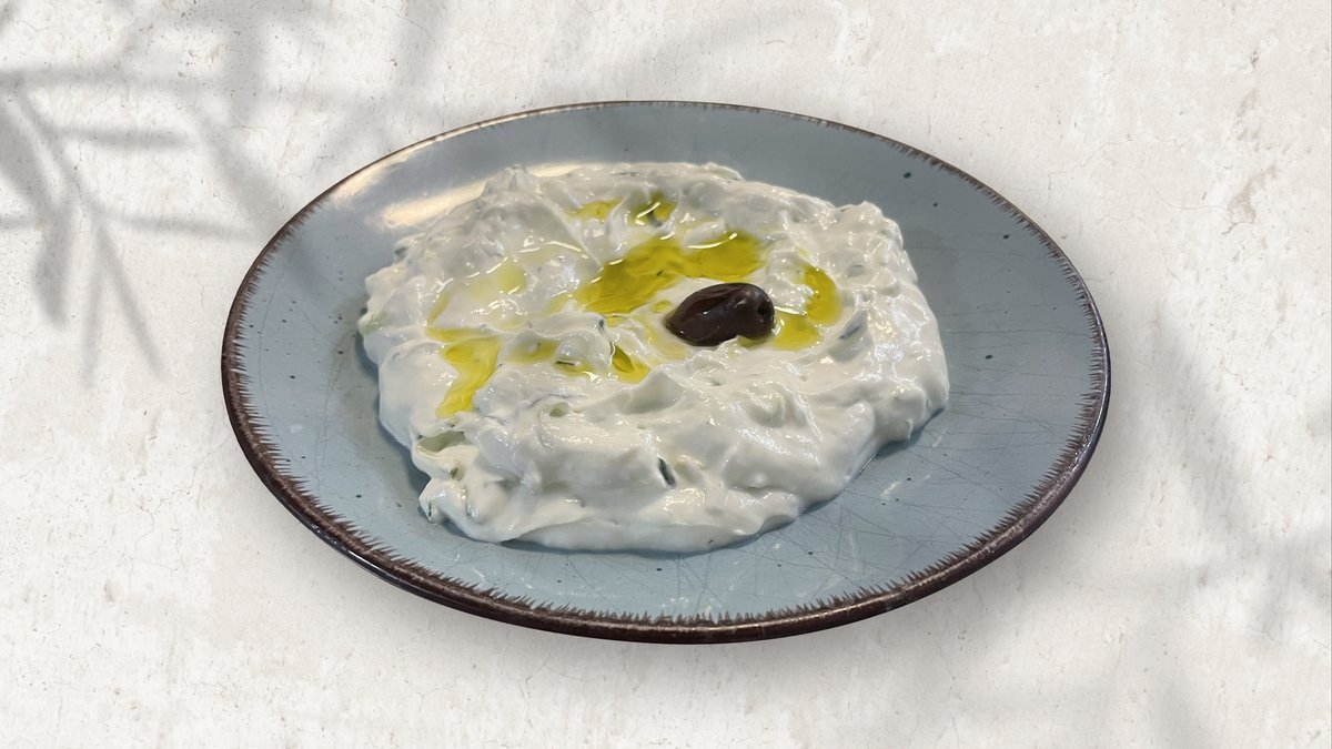 Dip z řeckého jogurtu, okurky, česneku a olivového oleje s koprem