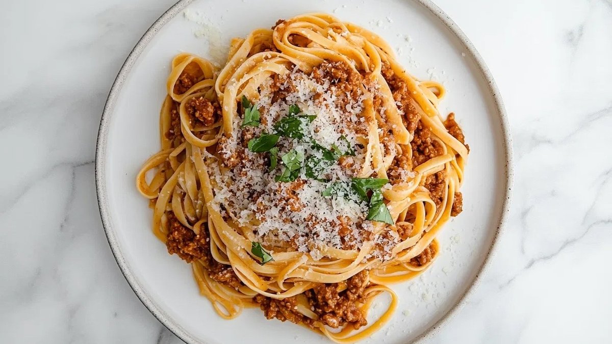 Těstoviny s rajčatovou omáčkou a mletým hovězím masem