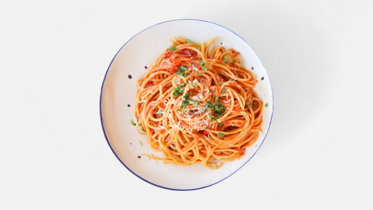 Těstoviny s rajčatovou omáčkou a bazalkou