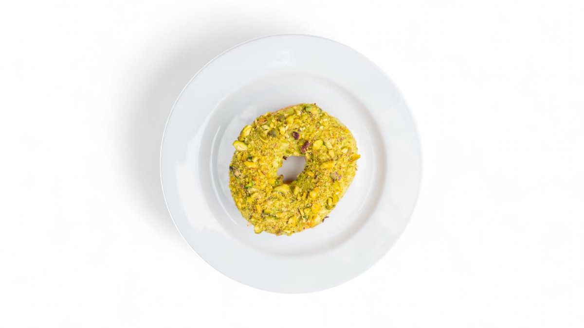 Donut s pistáciovou polevou ozdobený kousky pistácií