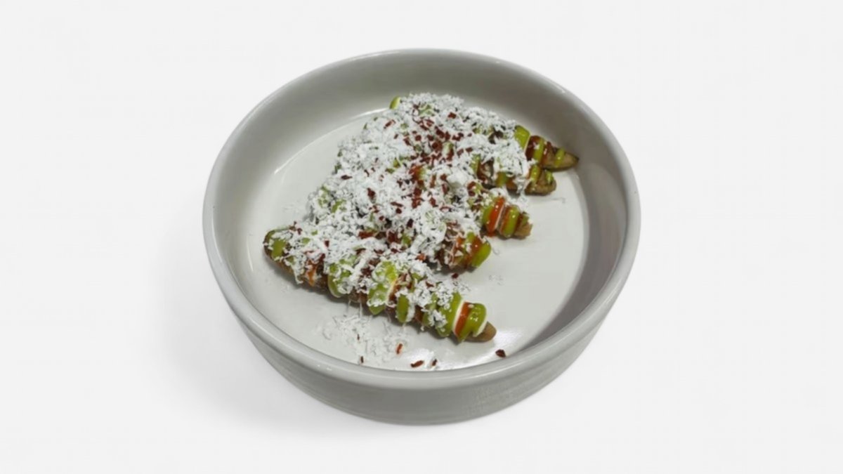 bylinkové pesto, pecorino romano, uzená majonéza, piniové oříšky
