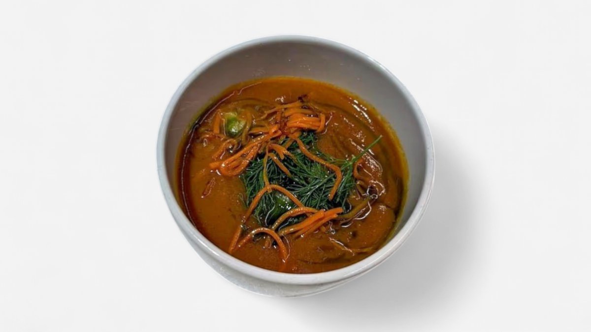 Polévka z pečených rajčat a krevet, grilovaná pražma
