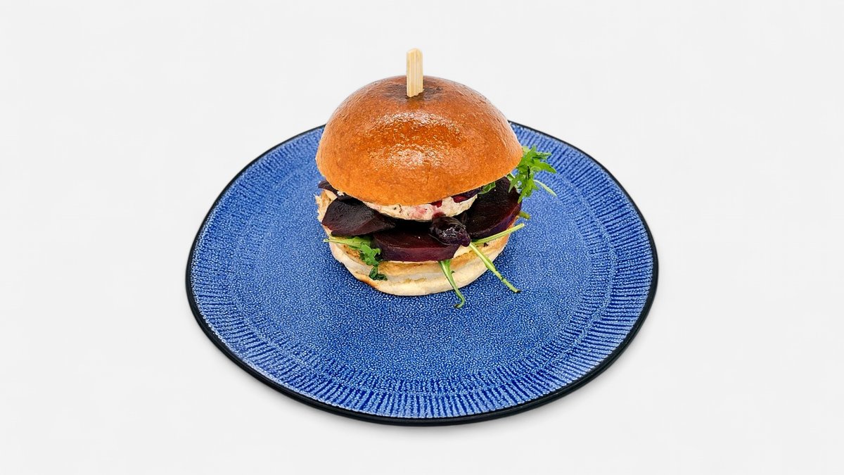 Pečený kozí sýr, rukola, domácí dresink, červená řepa, brusinky, cibuláda