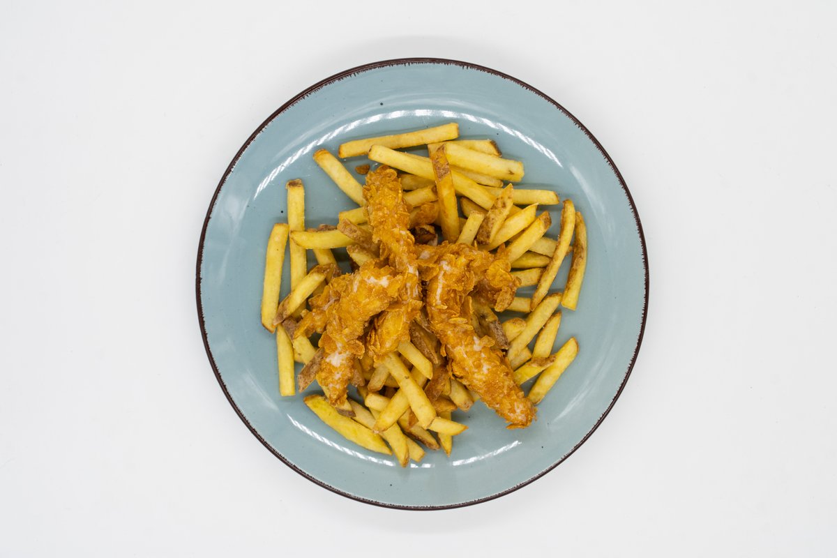 Kuřecí proužky v kukuřičných lupínkách s domácími hranolkami