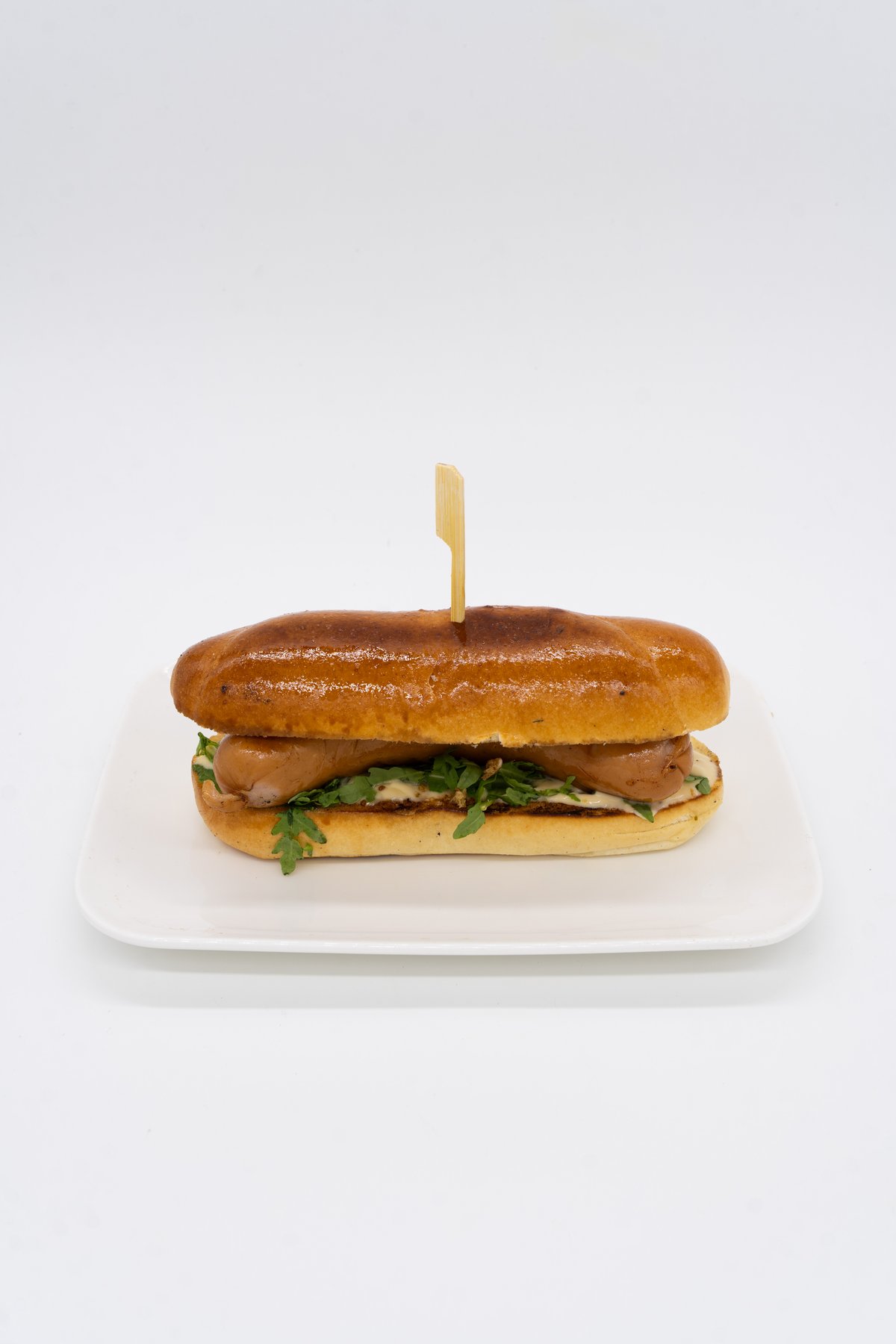 Domácí ručně dělaný hot dog s čerstvou brioškou
