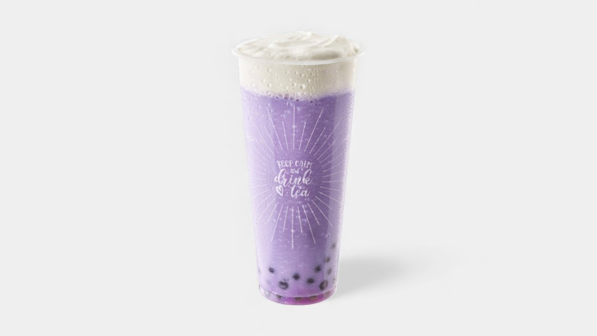 Mléčný čaj s taro příchutí.