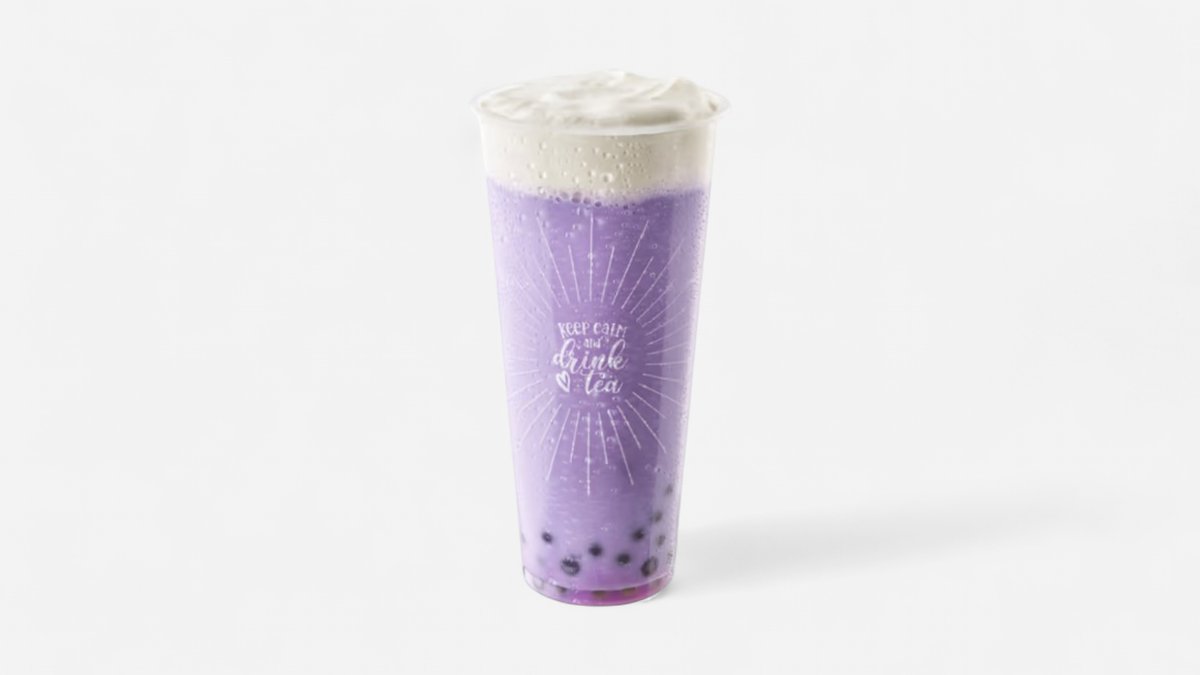 Mléčný čaj s taro příchutí.