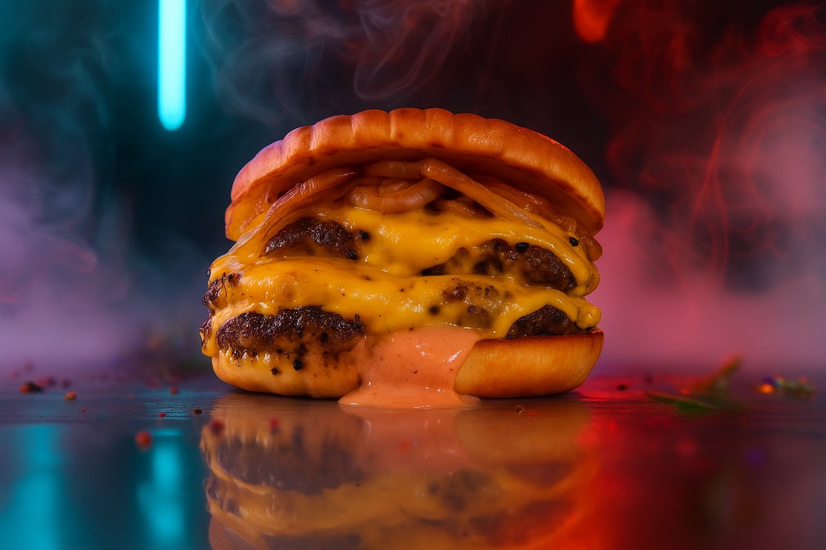 Tři vrstvy dokonale opečeného masa, rozpuštěný čedar a karamelizovaná cibulka spojené tajnou omáčkou. Připravte se na silnou explozi chutí v každém soustu!