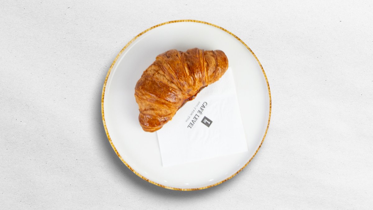 1 kus velkého máslového croissantu, Máslo, Náplň dle výběru (Pistácie, Čokoláda, Lesní ovoce), Čerstvý džus 0,2 litru