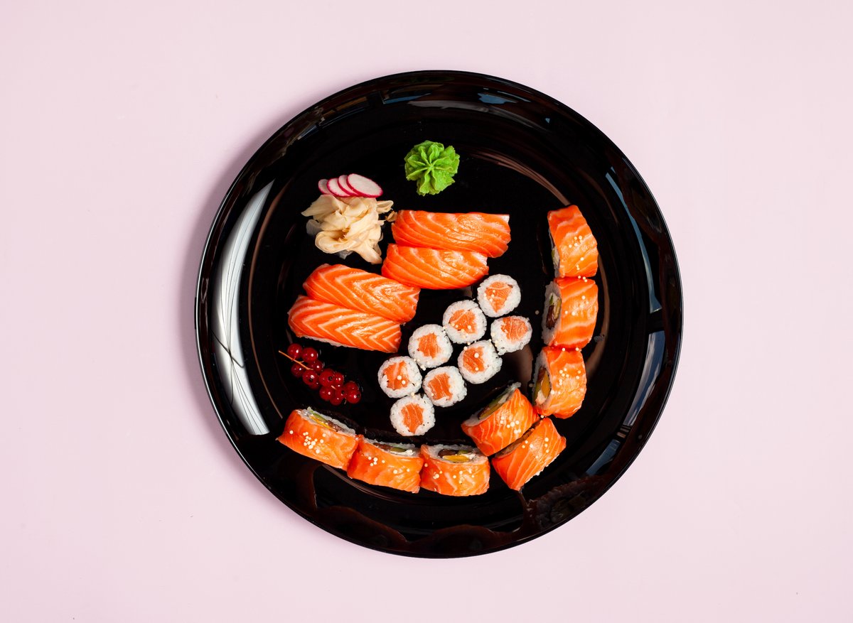 34ks california skin salmon, california tobiko, maki salmon, maki avocado, nigiri salmon 2ks, sashimi salmon 4ks