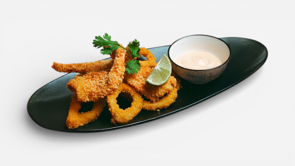 krevety a kalamáry v těstíčku, čili-mayo dip