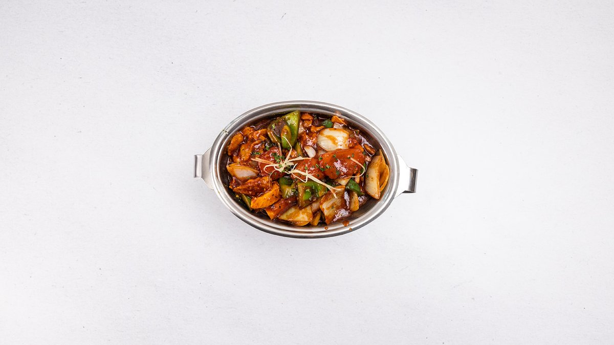 kuřecí kousky s červenou cibulkou, paprikou a zeleninou vařené ve speciální ostro-kyselé omáčce (ostrost pokrmu si můžete zvolit - od jemně pálivého, přes pálivý až velmi pálivý)