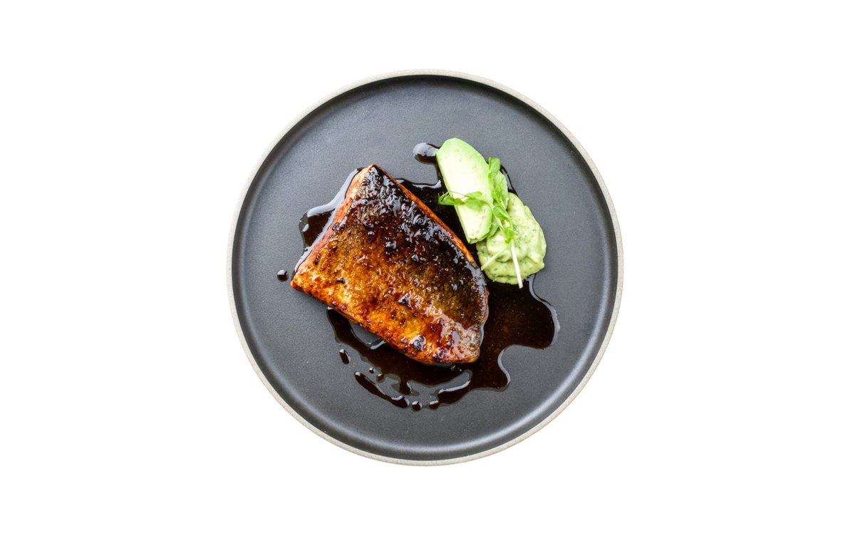 grilovaný losos se zeleninou, teriyaki omáčka, rýže