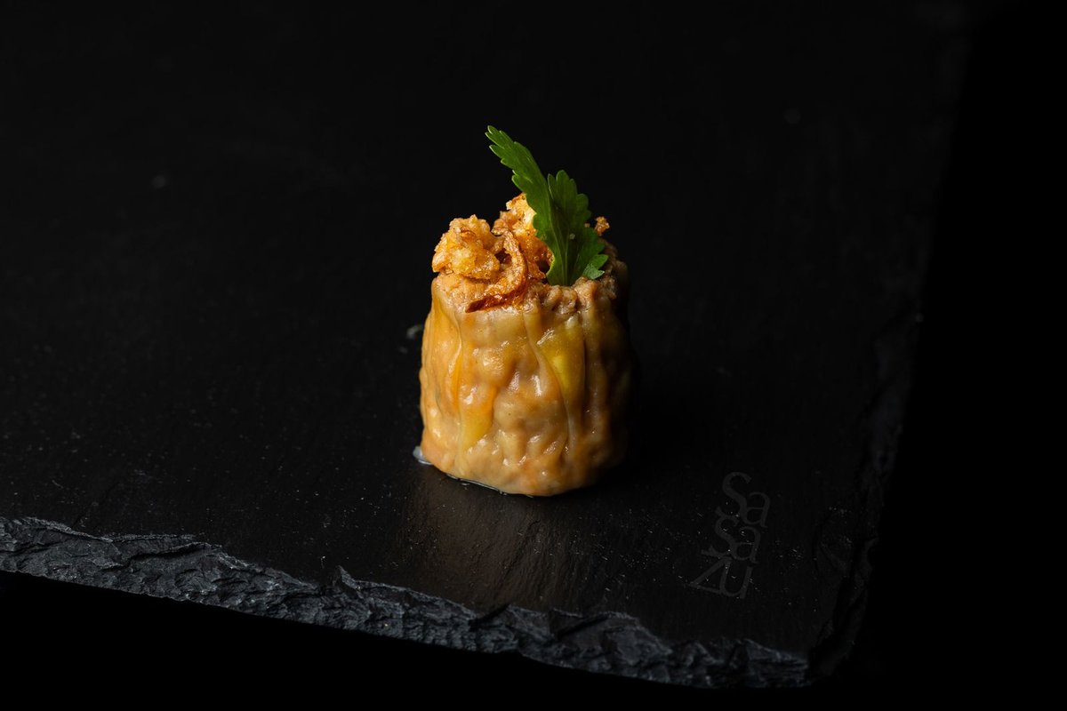 Kachní prsa, foie gras, hoisin-yuzu-ponzu omáčka, 3ks