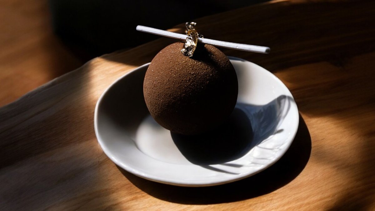 treska připravená v roti peci, galangal-kemiri omáčka, navajo smažený chléb, květáková omáčka