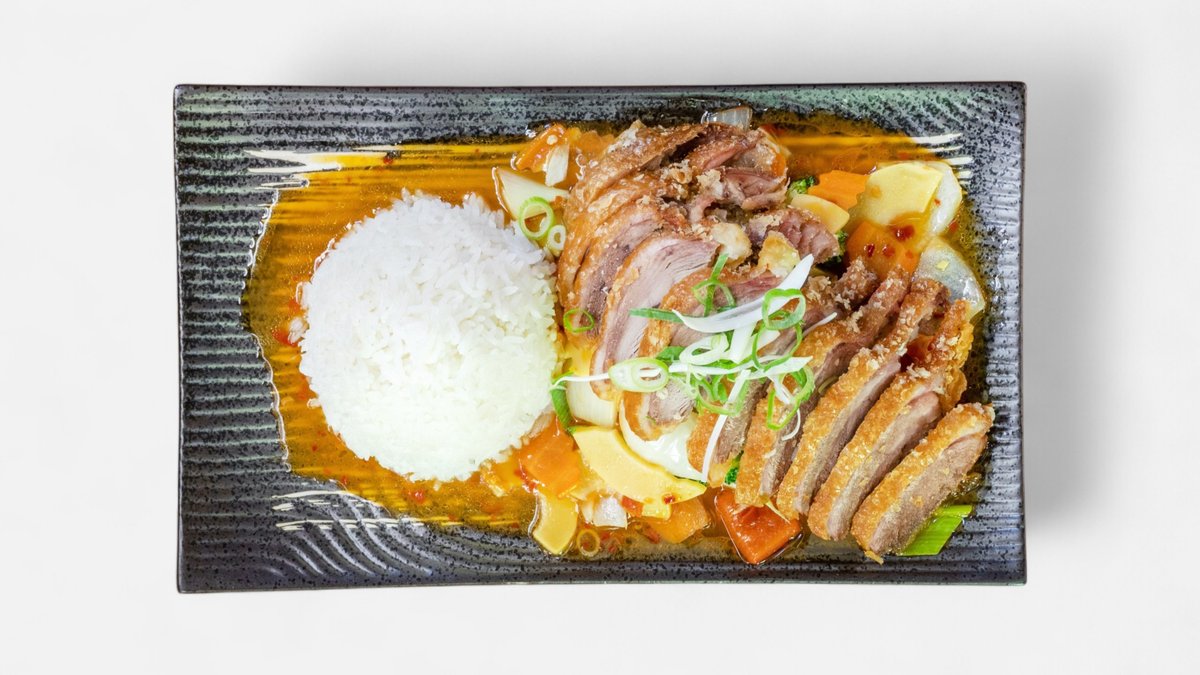 zelenina, sladkokyselá omáčka, kachna