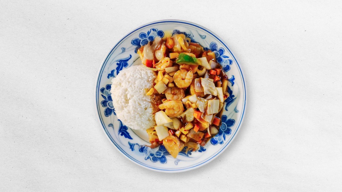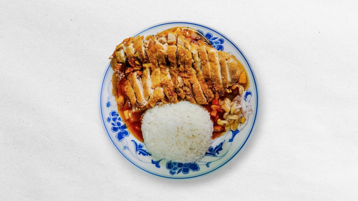 M21. Smažené voňavé a křehké kuře sečuán s rýží 🌶️