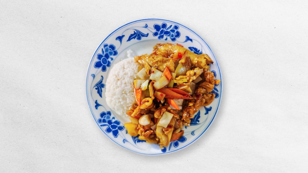 M21. Smažené voňavé a křehké kuře kung-pao s rýží 🌶️