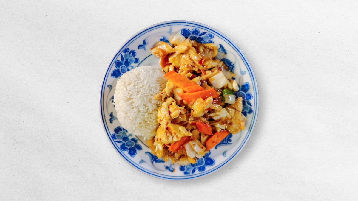 M2. Kuřecí maso po hunansku s rýží 🌶️