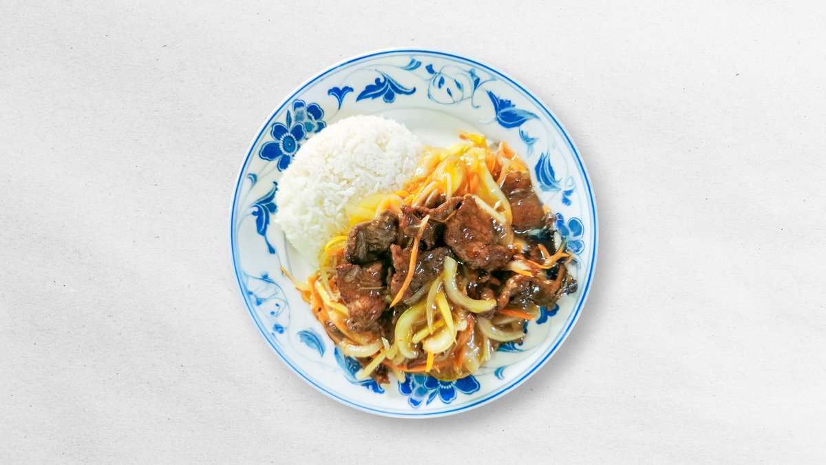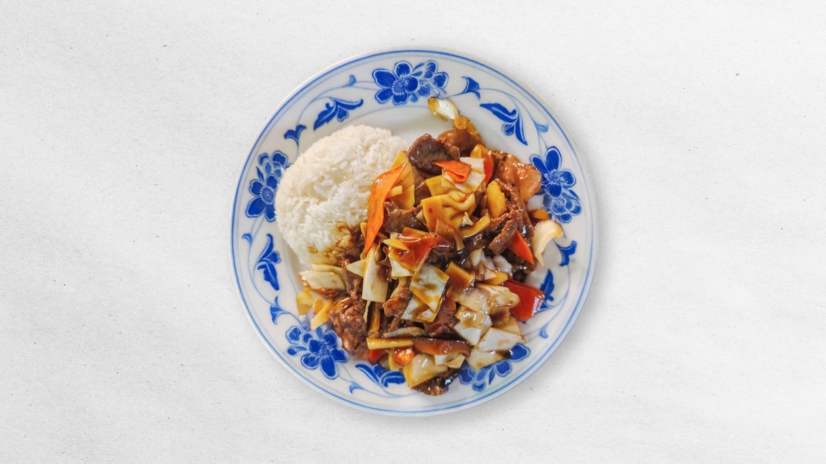 M56. Hovězí maso v omáčce sa-ča s rýží